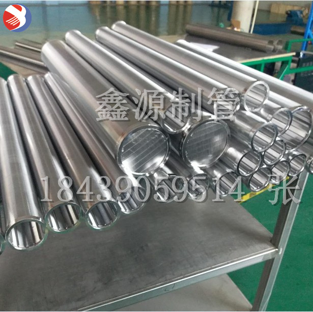 楔形絲濾管,也叫縫隙管、T型絲濾管、全繞焊絲管或約翰遜管由高精密度表絲螺旋形纏繞在軸向支撐筋上,支撐筋和表層絲以電阻焊的方法彼此牢固焊接成一體。這些過(guò)濾元件有高精度的特點(diǎn),縫隙開孔極小并有極佳的圓度??p隙管可以加裝必須的端蓋、法蘭、絲扣等連接件和加強(qiáng)件。